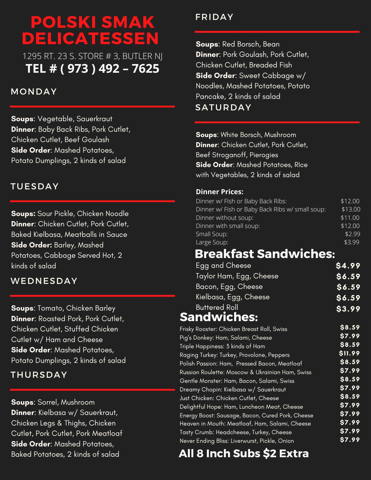 All 8" Subs $2.00 Extra